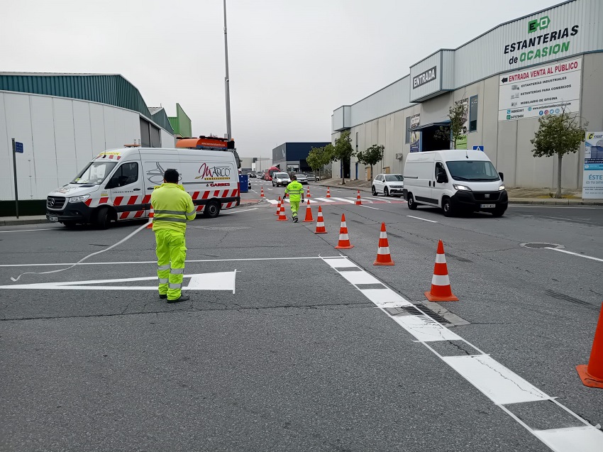 13 enero.- El Parque Empresarial inicia el año con el repintado de sus principales avenidas y calles. Desde ayer, se están llevando a cabos los trabajos consistentes en el pintando tanto de las líneas de carril como de los arcenes, flechas, simbología, cebreados, pasos de peatones y aparcamientos.